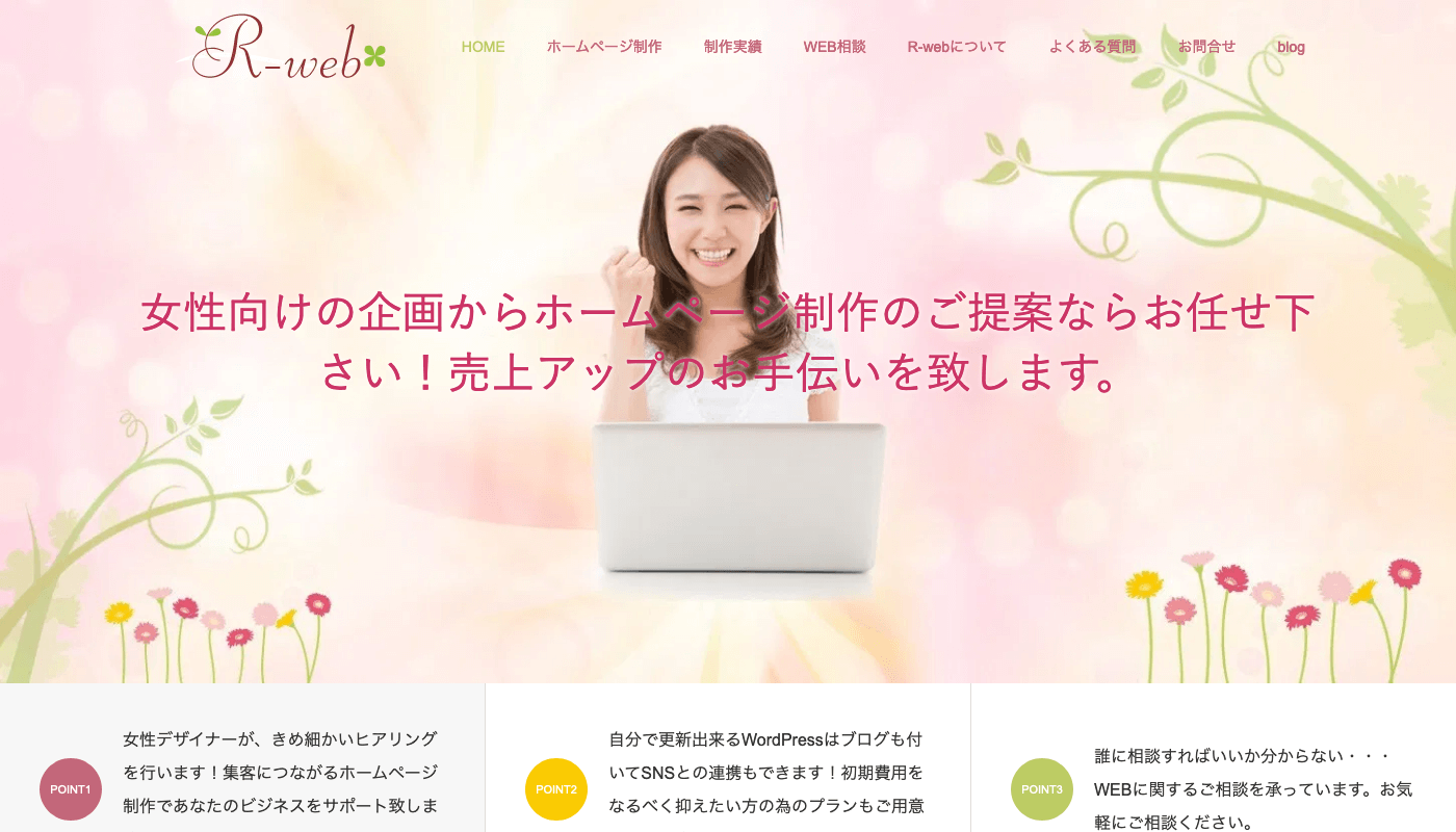 女性向けサイト制作を得意としており、WordPressプランもあります。